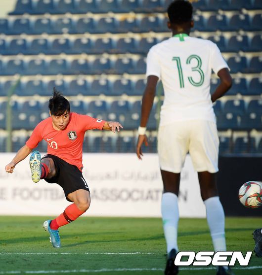 김학범 감독이 이끄는 22세 이하 축구대표팀은 13일 아랍에미리트(UAE) 두바이샤밥 알 아흘리 스타디움에서 열린 '2019 두바이컵' 1차전에서 이동준과 조규성의 연속 골이 터져 사우디아라비아를 2-0으로 눌렀다.