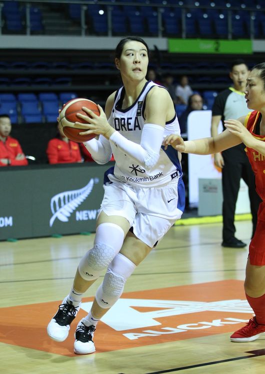 박지수는 통증을 참고 막판까지 뛰면서 중국의 만리장성 센터들을 막아냈다. 박지수는 23점, 8리바운드, 2어시스트, 3스틸, 1블록슛으로 김한별(11점, 5리바운드, 4어시스트, 3스틸)과 함께 골밑을 지켰다. 김정은도 21점으로 제 몫을 다했다. 박혜진은 막판 역전슛 포함, 11점, 3어시스트로 활약했다. / jasonseo34@osen.co.kr