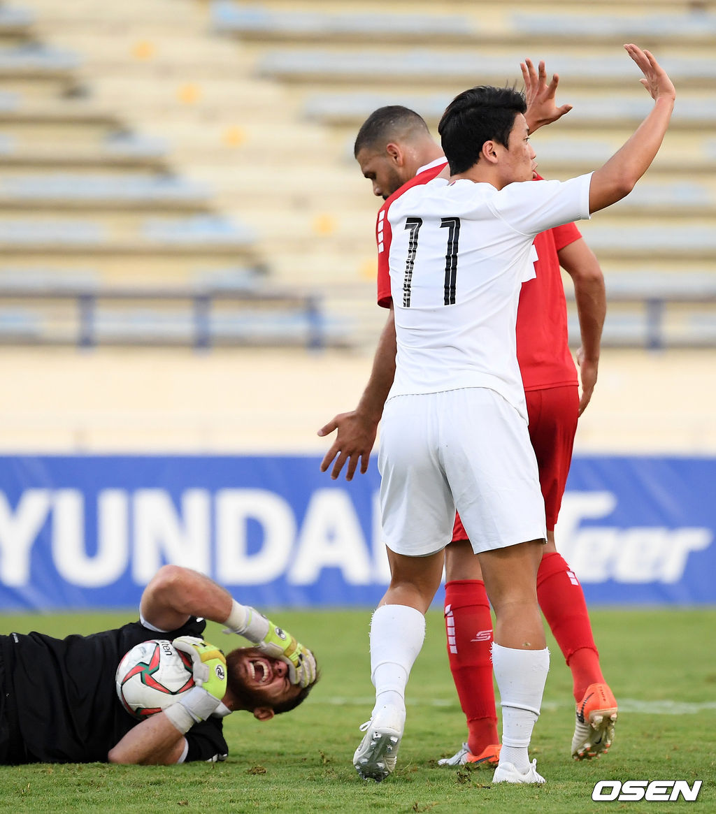 한국은 후반전 황희찬을 교체로 투입했지만 재미를 보지 못했다. 황희찬은 결정적 장면에서 골문으로 쇄도했으나 골키퍼와 충돌해 옐로카드를 받았다. 골키퍼 메디 칼릴은 간단한 부상치료에 5분 이상을 소비했다.