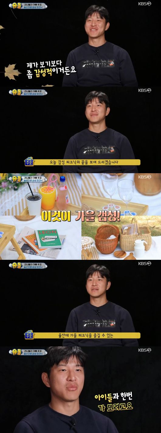 며칠 뒤 박주호는 아이들과 볕 좋은 공원으로 향했다. 아기자기한 소품들까지 미리 준비한 박주호는 "감성피크닉의 끝판왕을 보여드리겠다"면서 아이들과 돗자리를 껼고 간만의 여유를 만끽했다. 박주호는 "프랑스 감성"이라면서 울산지앵이 되어 피크닉을 즐겼다. 특히 건후는 매번 거부하던 아빠표 음식을 드디어 받아들였고, 이에 주호는 감동했다.