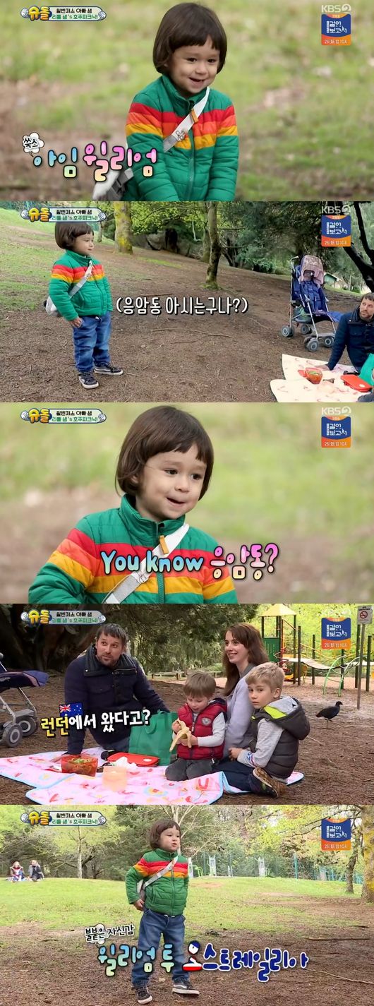 해밍턴이 벤틀리와 휴식을 취하는 사이, 윌리엄은 주변에 있는 호주사람들과 소통을 시작했다. 윌리엄은 해밍턴이 있는 쪽을 가리키며 "저 사람 호주사람"이라 말했고, 그러면서 "마이대디 개그맨"이라 말해 웃음을 안겼다. 급기야 윌리엄은 "유노 응암동?"이라 물었고, 호주인은 "런던에서 왔다고?"라며 이를 잘 못 들었다.
