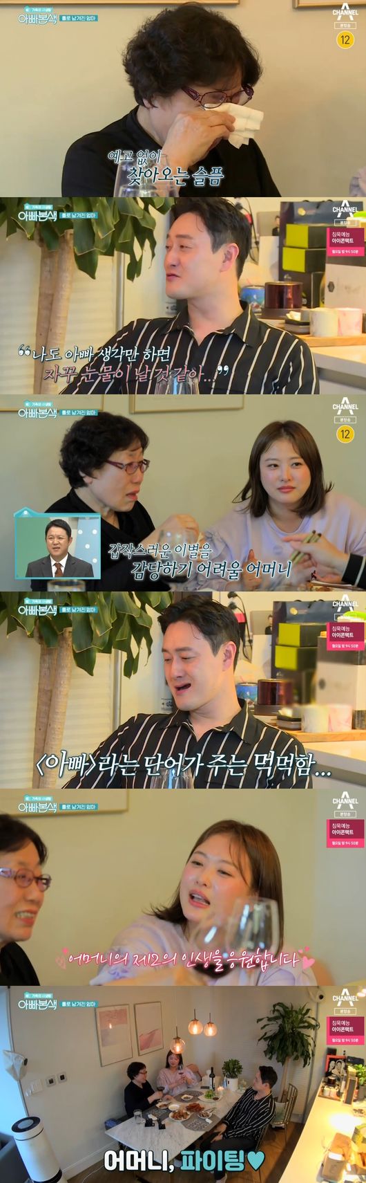 김원효는 아내 심진화, 母와 함께 아버지가 안식된 추모공원을 찾았다. 얼마 전 父를 먼저 하늘로 보낸 김원효는 가족들과 함께 생전 父가 좋아했던 꽃을 들고가기로 했다.