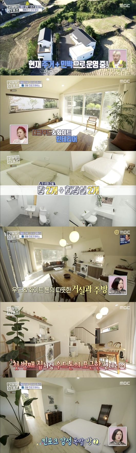 다음으로 박하선이 소개한 구좌읍 킨포크 감성 하우스는 실제 현재 주거와 민박으로 사용 중인 집으로 두 채로 되어 있었다. 이 곳은 잡지에서 나올 법한 세련된 우드 인테리어로 패널들을 홀렸다. 특히 집에 있는 모든 것이 옵션 이라는 말에 패널들은 "내가 사고 싶다"며 감탄을 금치 못했다.