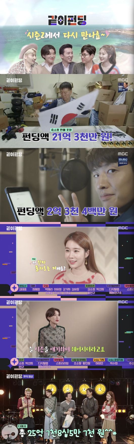 지난 17일 오후 방송된 MBC 예능프로그램 ‘같이 펀딩’에서는 유준상의 태극기함부터 마지막 아이템인 ‘바다 같이’까지 총 5개 프로젝트의 뒷이야기가 그려졌다.