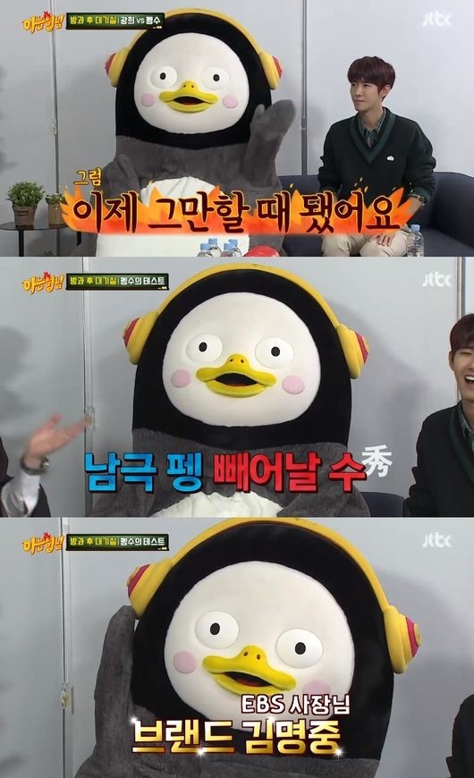 지난 16일 방송된 JTBC '아는 형님'에는 펭수가 '방과 후 대기실' 코너에 등장해 신동, 광희와 이야기를 나누는 모습이 그려졌다.