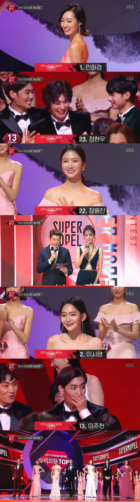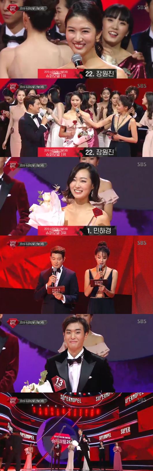 1위 후보가 된 탑7들의 열정이 돋보이는 가운데, 슈퍼모델 3위를 발표했다. 3위로 민하경이 수상했다. 2위로는 13번 이주헌이 수상, 다섯명으로 후보가 압축된 가운데 대망의 1위로는 22번 장원진이 수상하며 영광을 차지했다. /ssu0818@osen.co.kr