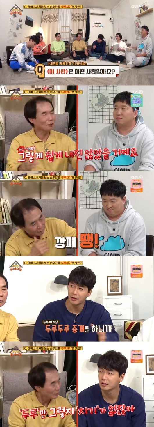 다음 문제는 순우리말 두루치기의 뜻을 맞추는 퀴즈였다. 김승현은 "두루 두루 중개를 하는 공인중개사 뜻 같다"라고 말했다. 이에 김언중은 "그건 치기가 없어서 안된다"라고 말해 웃음을 자아냈다.
