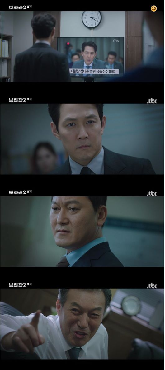 14일 오후 방송된 JTBS '보좌관2'에서는 송희섭(김갑수 분)이 오원식(정웅인 분)에게 장태준(이정재 분)의 흠을 잡아오라고 지시, 이에 장춘배(김응수 분)의 금품수수 의혹이 보도 됐다.