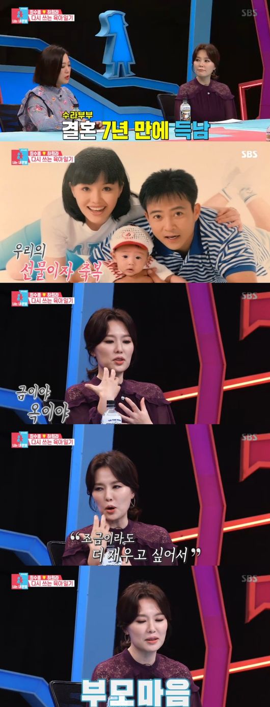 결혼 7년만에 득남했다는 두 부부에게 당시 소감을 물었다. 오랜 기다리 끝에 만난 첫 아이에 대해 하희라는 "결혼하면 당연히 아이생길 거라 생각, 6년 기다림 끝에 만난 아이는 우리에게 정말 선물이자 축복이라 느꼈다"며 회상했다.