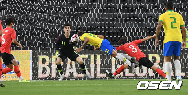 한국이 브라질에 추가골을 내주면 0-2로 끌려가고 있다.