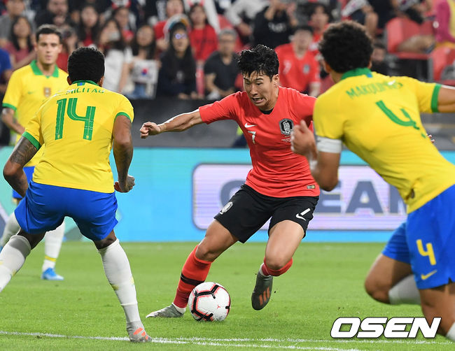 파울루 벤투 감독이 이끄는 한국 축구대표팀은 19일(한국시간) 밤 아랍에미레이트(UAE) 아부다비의 모하메드 빈 자예드 경기장에서 열리는 브라질과 국가대표 친선경기에서 0-3으로 끌려가고 있다.