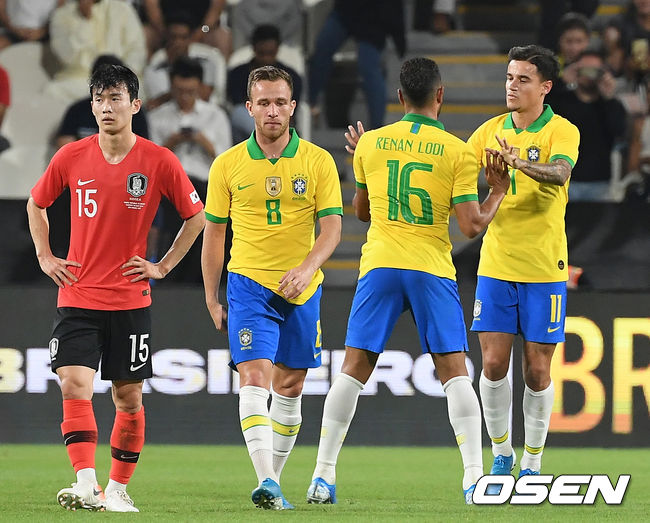 파울루 벤투 감독이 이끄는 한국 축구대표팀은 20일(한국시간) 오전 아랍에미레이트(UAE) 아부다비의 모하메드 빈 자예드 경기장에서 끝난 브라질과 국가대표 친선경기에서 0-3으로 완패했다.