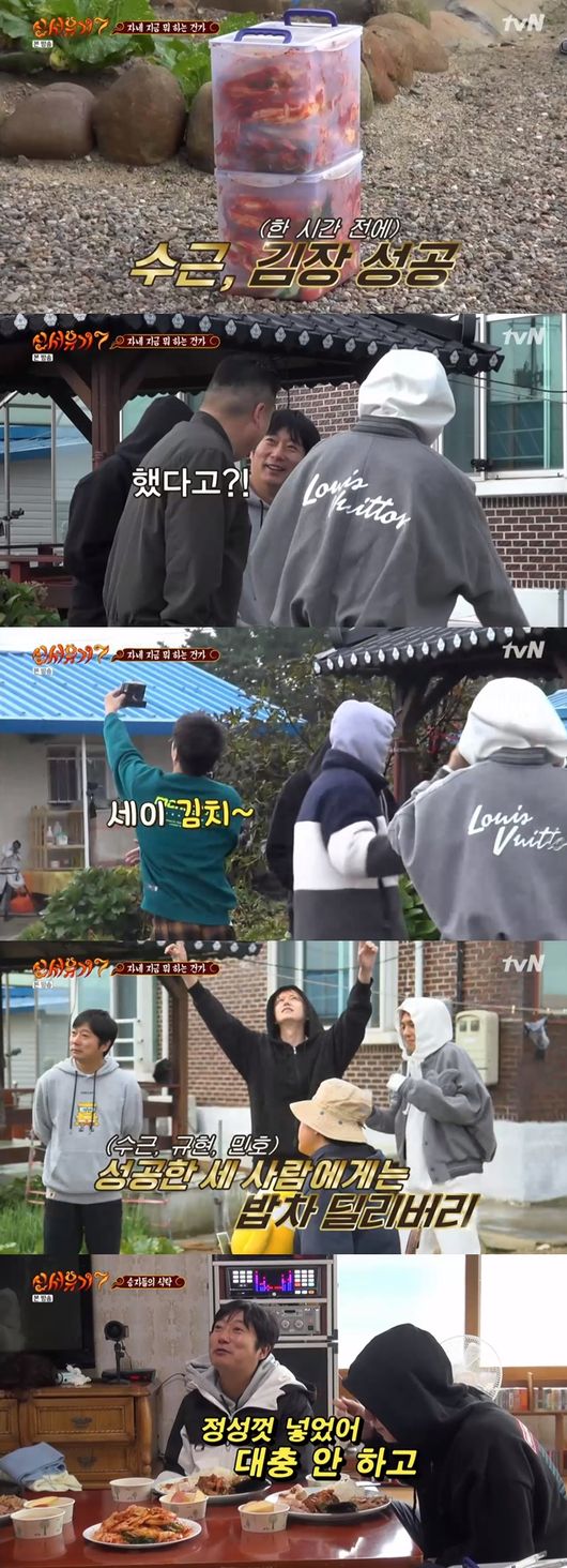 이수근은 계속해서 김장을 하겠다라고 고집을 부려 주위를 폭소케 했다. 이에 멤버들은 김치 양념을 숨겼다. 그 사이 강호동은 계속해서 노래를 부르려고 했고 결국 규현은 강호동의 노래책을 숨겼다.