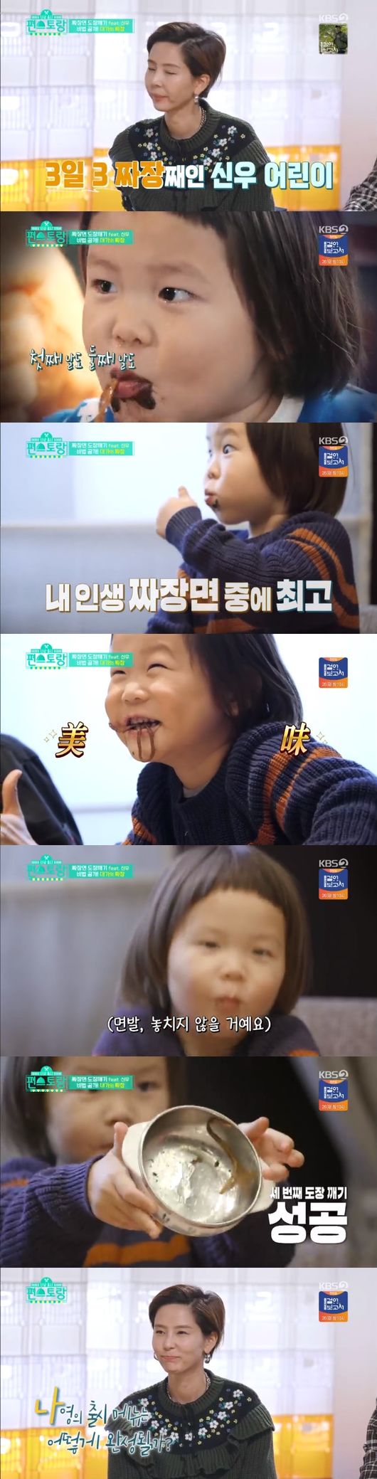 김나영은 아들 신우가 좋아하는 짜장면은 만들기로 선정하면서 유명한 짜장면을 먹기 시작했다. 식당 주인은 신우의 짜장면 먹방을 보면서 "내가 50년동안 장사를 했는데 신우가 일등이다 일등"이라고 하면서 신우를 기특해 했다.