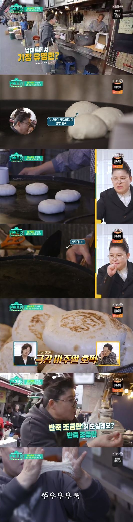 영자의 시작은 남대문 시장이었다. 어묵에 이어서 아궁이에 굽는 40년 전통의 호떡을 발견했다. "누룽지 냄새가 난다"고 하면서 "공갈 빵 같은데 촉촉함이 느껴진다"고 했다. 이에 최현석도 "이거 정말 맛있겠다"라고 하면서 군침을 삼켰다. "호텔에서 파는 거 같다 너무 고급스럽다. 안이 비지 않고 차있다"면서 호떡을 폭풍 흡입했다.