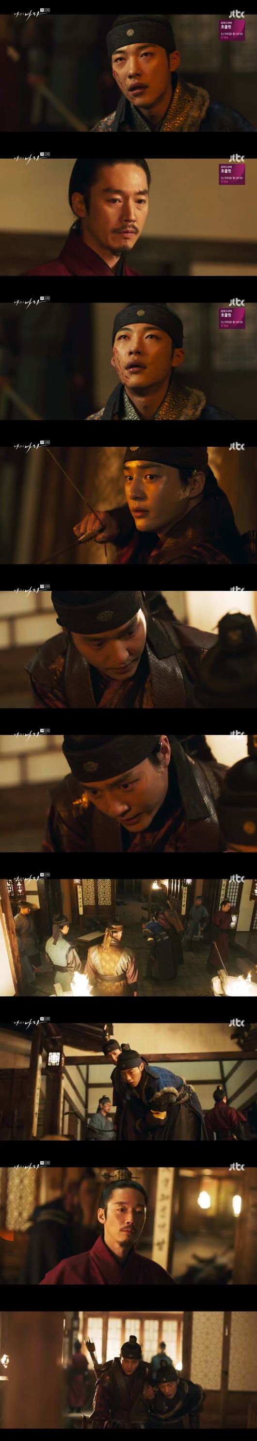 방원을 다시 죽이러 간 선호는 방원이 서검을 죽이여 했던 배후 세력이라는 걸 알게 됐다. 그 뒤로 휘가 등장했다. "나를 막겠다? 나를 막으면 너 또한 벤다 했다."라고 하는 방원의 등으로 휘가 활시위를 당겼다." 대군이 나를 위로해 준거 모두 지우겠소 허니 보내주시오 나의 가장 소중한 벗 지키게 해주시오." 라는 말에 방원이 "나를 쏘겠다 네가 나를 죽인다?"라고 했고, "여기가 대군과 나의 끝점이오."라는 말을 하며 휘가 방원을 노려봤다. "가거라. 이건 네 공에 대한 상이다. 가급적 멀리, 멀리 떠나라. 라고 했다." 이에 선호가 의식을 찾았다. "죽기 참 힘드네."라는 선호에게 휘가 "악착같이 살릴거다. 허니 악착같이 살아라"라 말을 이었다./anndana@osen.co.kr