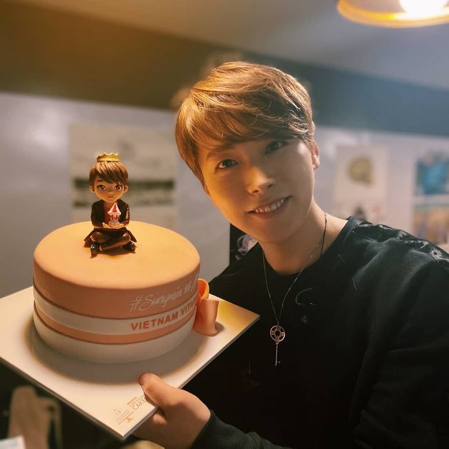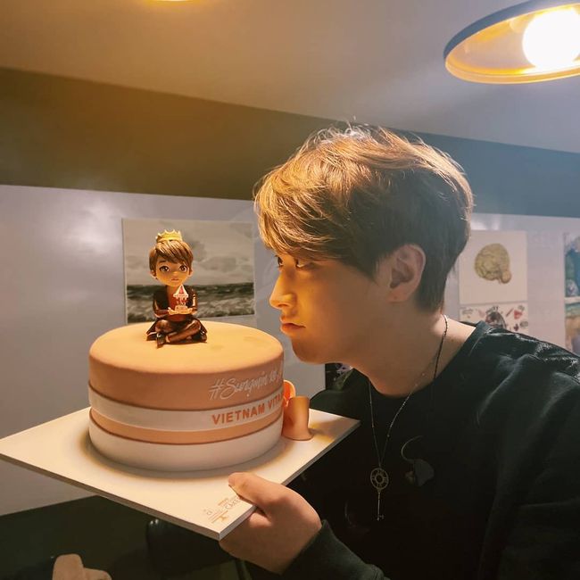 이와 함께 성민은 사진 세 장을 게재했다. 사진 속 성민은 베트남 팬들이 보낸 것으로 보이는 케이크를 들고 있다. 케이크 위에는 성민을 닮은 설탕 장식이 놓여 눈길을 끈다. 해당 게시물을 본 아내 김사은도 "대박 닮았음"이라는 댓글을 남겼다.