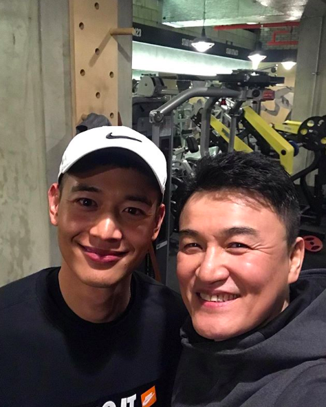 사진 속에서 박중훈은 헬스장에서 운동 중인 민호와 함께 셀카를 찍고 있는 모습.