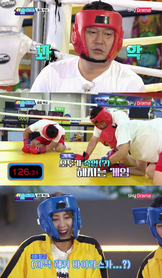 23일 오후 6시 '위플레이' 8회에서는 '익스트림 플드컵'에서 금메달을 쟁탈하기 위해 복싱 경기를 펼치는 여섯 멤버들의 모습이 공개된다. 강호동, 이수근, 하하, 딘딘, 정혁, 하성운은 헤드 기어, 권투 글러브까지 완벽하게 착용한 모습으로 기대감을 자극했다.