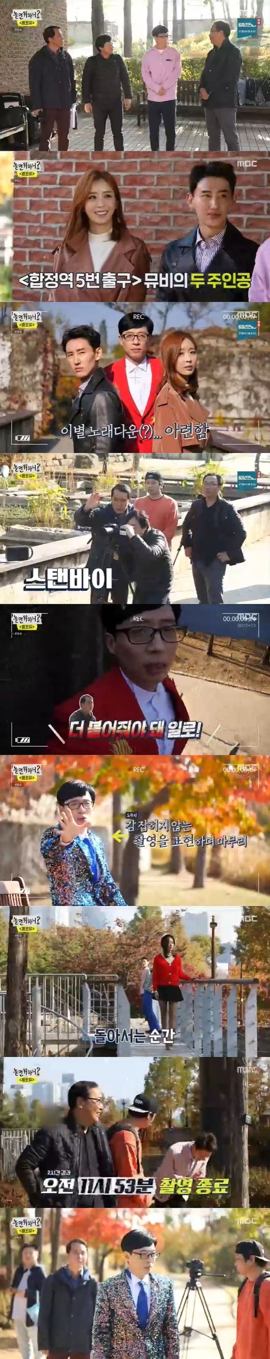 23일 오후 방송된 MBC '놀면 뭐하니?'에서는 유재석이 선유도 공원에서 트로트 뮤직비디오 거장 3인과 촬영을 하는 모습이 그려졌다.