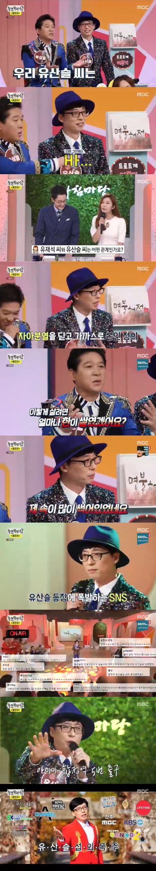 방송을 접한 시청자들은 "유재석과 유산슬은 무슨 관계냐?"고 물었고, 유산슬은 "유재석은 본인 스스로 결정하고 움직이는데, 유산슬은 누군가에 의해 조종 당하고 있다"고 답했다.