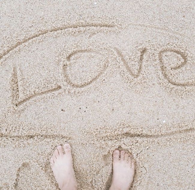 이영애는 모래사장 위에 'LOVE'라고 글자를 쓰고 주변으로 동그라미를 그렸다. 그 아래로 신발을 벗고 있는 이영애의 발이 보인다.