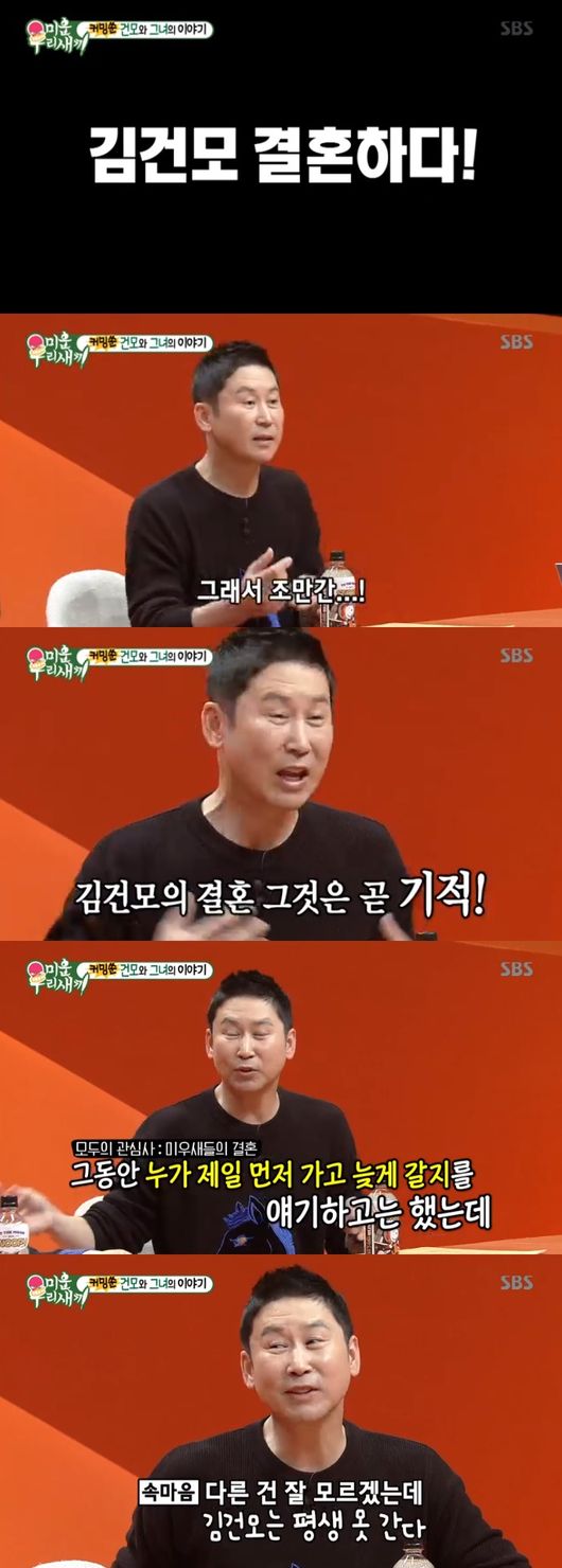 24일 방송된 SBS 예능 '미운 우리 새끼'에서는 김건모 결혼 소식을 접하고 솔직한 자신의 심정을 말하는 신동엽의 모습이 그려졌다.