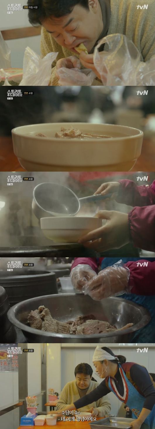 이어 주문한 소탕이 나왔다. 백종원은 "우리 설렁탕이랑 같다. 양념하고 파, 고수를 넣어서 먹으면 된다"고 말했다. 백종원은 부추꽃장을 넣으면 맛이 달라진다고 말하면서 '이질감이 느껴지지 않는다. 부추꽃을 소금에 절여 만든 장이다. 한번 꼭 시도해보라"고 전했다.