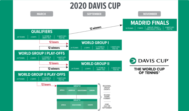 데이비스컵은 2020년부터 새롭게 변경된 제도에 따라 기존의 ‘지역그룹 1, 2’가 ‘월드그룹 1, 2’로 대체된다. 월드그룹 1, 2는 각각 24개 국가로 구성되며 홈/원정 경기 형식으로 치러진다. 또한, 각 월드그룹에 진출하기 위한 ‘월드그룹 1 플레이오프’와 ‘월드그룹 2 플레이오프’가 신설된다. 지역그룹 3, 4는 구조 변경 없이 그대로 운영된다. / jasonseo34@osen.co.kr