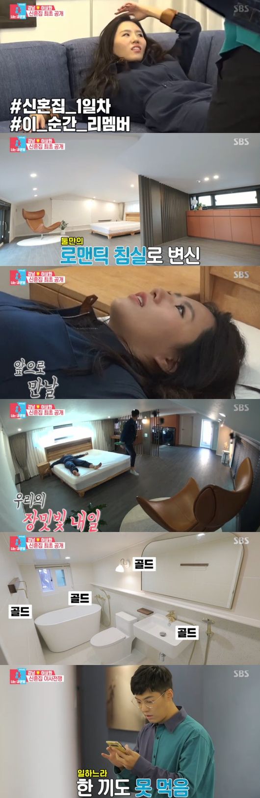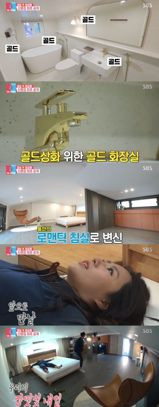 무엇보다 금메달 여신 이상화를 위해 골드로 포인트 인테리어를 선물, 이상화 역시 마음에 쏙 든 신혼 집에 "너무 행복하다"며 흡족한 미소를 지었다. 강남은 "이제 우리 함께하는 인생이 시작이다"고 말해 이상화를 감동시켰다. 분위기를 몰아 두 사람은 결혼사진으로 액자를 완성하며 달달한 모습을 보였다.