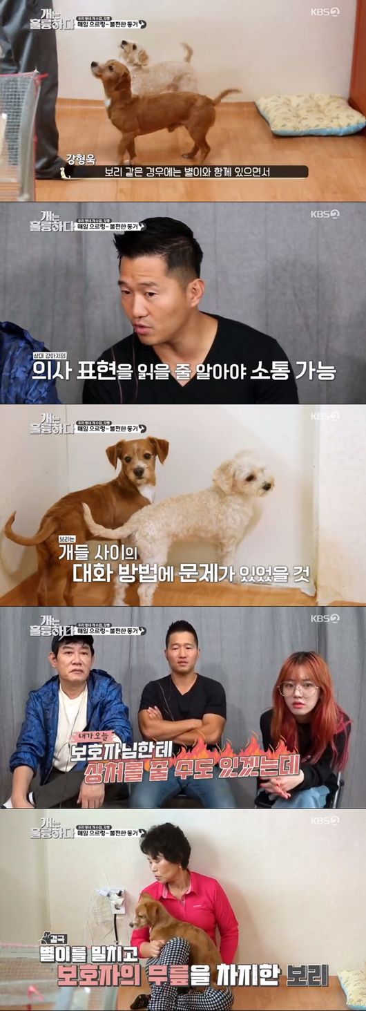 강형욱은 본격적으로 수업에 나섰다. 강형욱은 "보리는 공격성이 있는 강아지다. 보호자님을 내꺼라고 생각하고 있다. 그래서 둥이에게 가는 애정이 싫은 것. 별이에게도 이런 행동을 했을거다"라고 말했다. 이어 강형욱은 "둥이와 보리, 별이가 친해지는 방법은 딱 하나다. 둥이가 알아서 성장해서 보리와 별이를 싸워 이기는 방법 밖에 없다"라고 말했다.