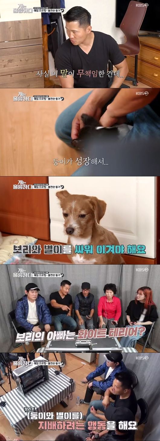 강형욱은 "보리가 보호자를 차지하려고 하고 있다. 항상 자리싸움을 했을거다. 별이는 싸움을 싫어하는 것"이라고 말했다. 이 모습을 본 이경규는 "저런 생각을 깨부셔줘야겠다"라고 말해 웃음을 자아냈다.