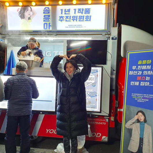 배우 송윤아가 간식차를 선물해준 팬들에게 감사한 마음을 표현했다.