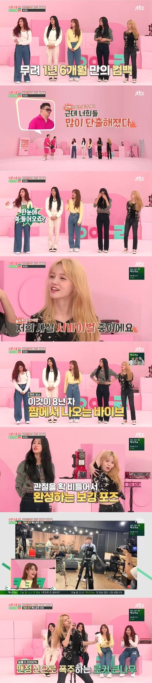 26일 오후 방송된 JTBC '아이돌룸'에는 6인조에서 5인조로 재정비하고 신곡을 발표한 걸그룹 AOA가 출연했다.