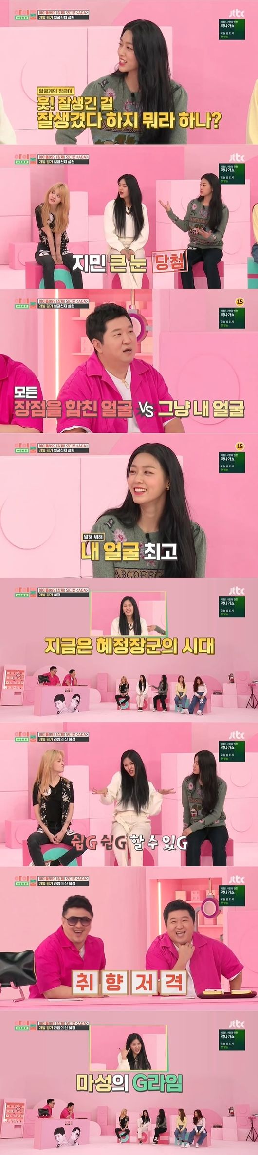 설현은 외모 자부심을 숨기지 않았고, "내 얼굴은 보는 재미가 있다. 얼굴만으로 재미가 있다"고 밝혔다. 이에 지민은 "이런 얘기를 들으면 어이가 없다"고 털어놔 웃음을 자아냈다.