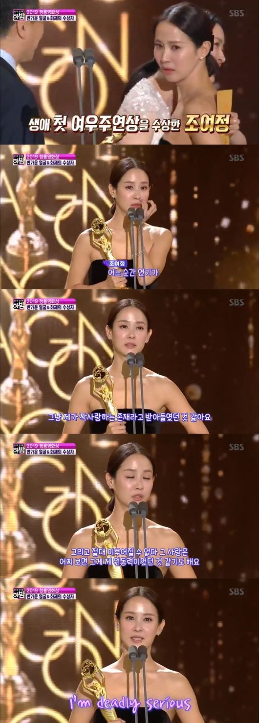 26일 오후 방송된 SBS'한밤의TV연예'에 지난 청룡영화제에서 수상한 조여정이 출연 했다.