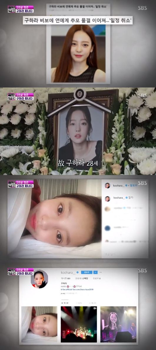 26일 오후 방송된 SBS'한밤의TV연예'에는 구하라의 비보가 전해졌다.