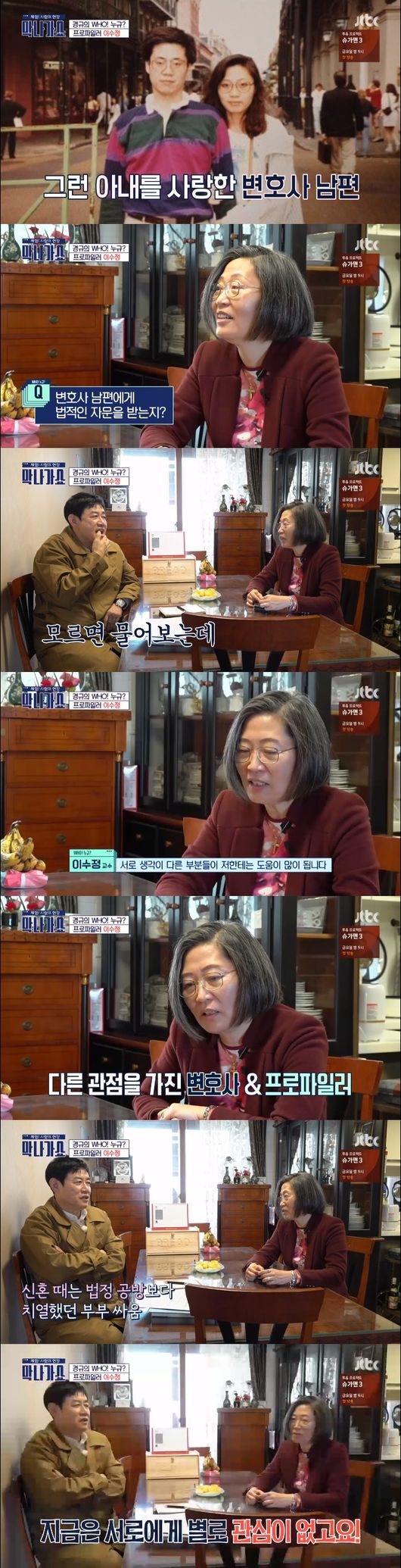 이수정 교수는 "변호사인 남편에게 도움을 받는 적이 많다"고 했다. "결혼 초기에는 서로 이기려고 밤새 싸운 적이 많았는데 지금은 서로 관심이 없어서, 그리고 싸우는 것도 에너지 낭비라는 걸 알기 때문에 싸우지 않는다 사람은 변하지 않는 다는 걸 알고 있다"고 했다.