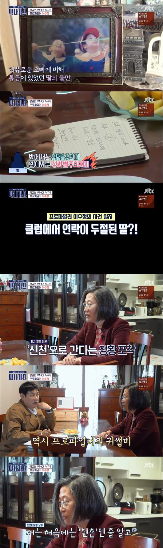 그녀는 "딸이 중고등학교 때 늦게 오는 것에 신경을 많이 쓸 수 밖에 없다"고 했다. "한번은 클럽에 갔는데 딸이 연락이 안되서 남편이랑 신촌의 모든 클럽을 새벽 내내 찾으러 다녔던" 일화를 소개했다. 경규는 여러 키워드 중에서 "평소에는 잘 웃으시는데 사진은 전혀 웃지 않으신다"고 하면서 "웃고 있는 사진을 찍어 드리고 싶다"고 했다. 이수정 교수는 흔쾌히 응했고, 거실 한가운데서 이뤄진 촬영에 편하게 웃는 모습을 보였다.