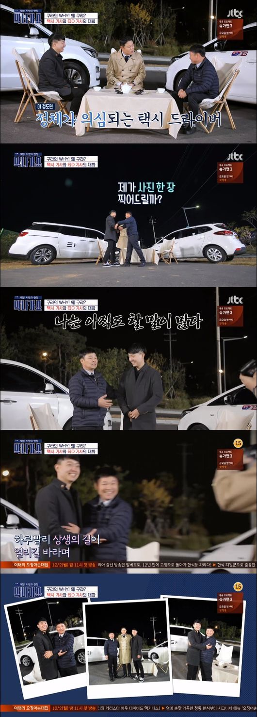이어 열변을 토했던 개인 택시 기사가 등장했다. 두 드라이버는 침묵 속에서 서로의 차를 타주면서 긴장을 더했다. 택시 기사 우선주는 "기사식당에서 타다를 본적이 없다"고 하면서 "기사들이 있는 장소에 나타나지 않는 것"을 물어 봤다. 이에 "환경이 문제 인 거지 개인간의 문제가 아니다. 같이 고생하는 상황에서 안아주고 싶다"고 말을 전했다.
