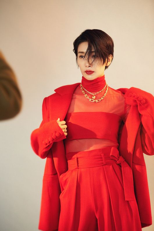 ‘레드’를 주제로 한 이번 화보에서 김서형은 다양한 의상과 액세서리를 완벽하게 소화하며 독보적 아우라를 뽐냈다.