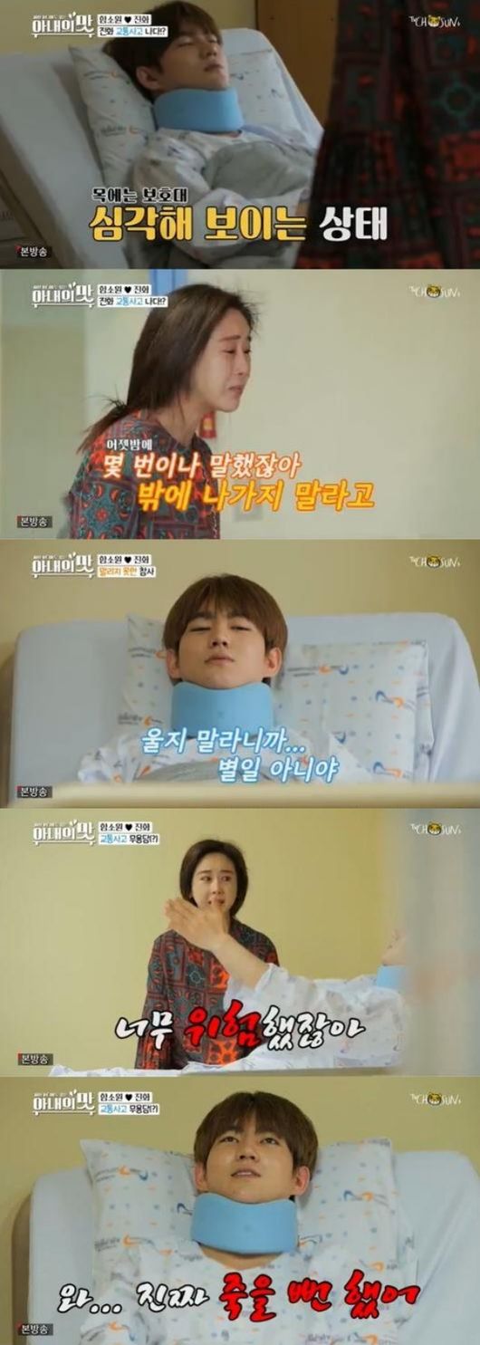 지난 26일 방송된 TV CHOSUN '세상 어디에도 없는, 아내의 맛'(이하 '아내의 맛')에서는 진화가 음주 뺑소니 차량에 치여 병원에 입원한 모습이 전파를 탔다.