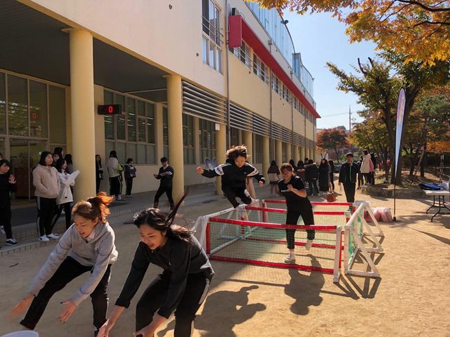 점심시간을 활용하여 남학생들은 4:4 풋살을, 여학생들은 단체 릴레이와 양궁체험 프로그램을 진행했다. 매 학교 방문 때마다 100여명이 넘는 학생들이 참가 하였으며 짧은 점심시간 동안 학생들이 맘껏 뛰고 즐길 수 있는 시간을 가졌다.