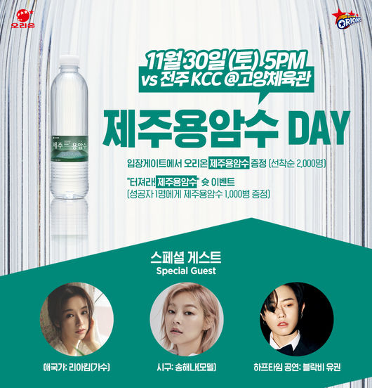 고양 오리온 오리온스 30잉 고양체육관에서 열리는 2019-2020 프로농구 전주 KCC 전에서 제주용암수 데이 행사를 개최한다고 27일 밝혔다.