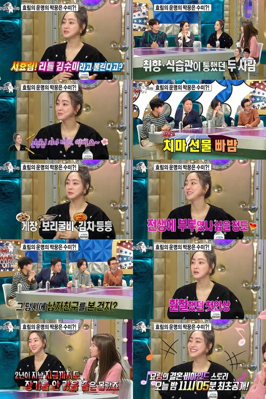 배우서효림이 '운명의 짝꿍'인 김수미와의 인연을 공개했다. 이와 함께 2년 전 김수미의 아들 정명호를 처음 만났을 때의 반응을 털어놔 웃음을 자아냈다.