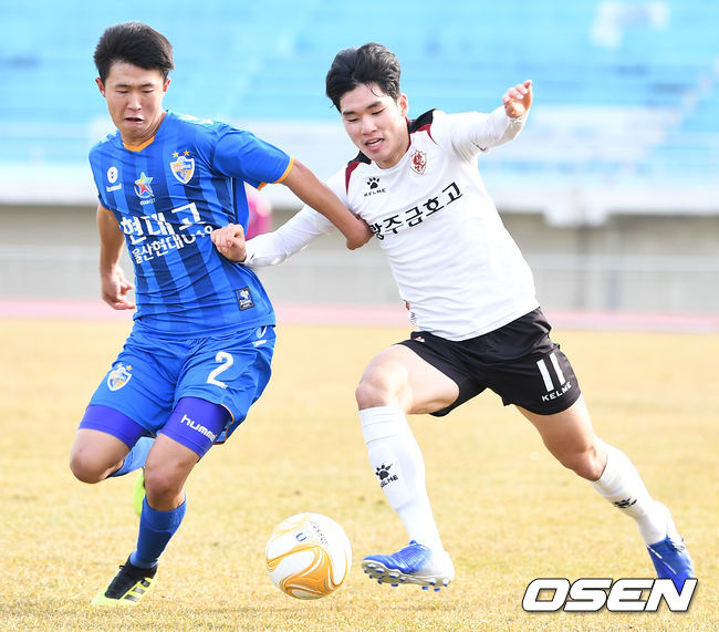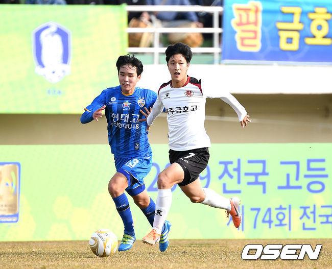 양 팀은 전반 초반부터 팽팽하게 맞붙었다. 현대고는 다이렉트한 공격으로 금호고를 공략했다. 금호고 또한 강력한 수비 블록을 형성하고 상대 공세를 막아냈다.