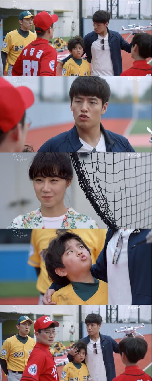 옹산 드론남 필구가 등장했다. 필구는 석대초등학교와의 시합에서 위협구를 맞고 투수에게 달려들어 코를 때렸다. 이에 석대초 투수 아빠가 필구를 향해 "싹수가 노랗고 싸가지가 없다"는 말로 필구를 윽박질렀다. 정숙(이정민 분)는 벨트를 풀어 주먹에 둘렀고, 이에 동백(공효진 분)이 나서 경기장으로 나갔다. "저 형이 먼저 위협구 던지고 메롱을 했다"고 필구의 항변이 이어지는 가운데, 용식이 헬리켐을 위장한 드론을 들고 등장했다.