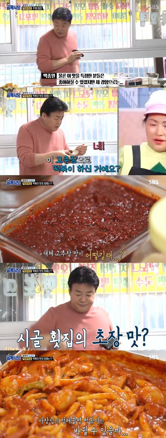 이날 백종원은 펑택역 뒷골목 편이 그려진 가운데 사상 최악의 시식평을 남긴 떡볶이집 주방을 점검했다.주방 냉장고 안에는 다른 곳에서도 볼 수 있는 기성품들이 가득했다. 이어 냉장고에 개인적인 물품이 많은 것을 발견, 사장은 "거기서 먹고 자고 하기 때문"이라며 삼시세끼를 가게에서 해결한다고 전했다.