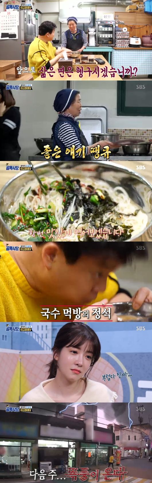 먼저 모녀가 함께 장사하는 할매국숫집이 그려졌다. 지난주와 달리 스테인리스 그릇하며 후추와 고춧가루 테이블 비치 등 달라진 모습이 그려졌다. 손님들의 국물반응도 좋았다. 이때, 사장은 삶은 면을 찬물에 헹구지 않았고, 백종원은 "저렇게 하면 빨리 불게 된다"면서 면 헹굼의 미스터를 잡아내기로 했다.