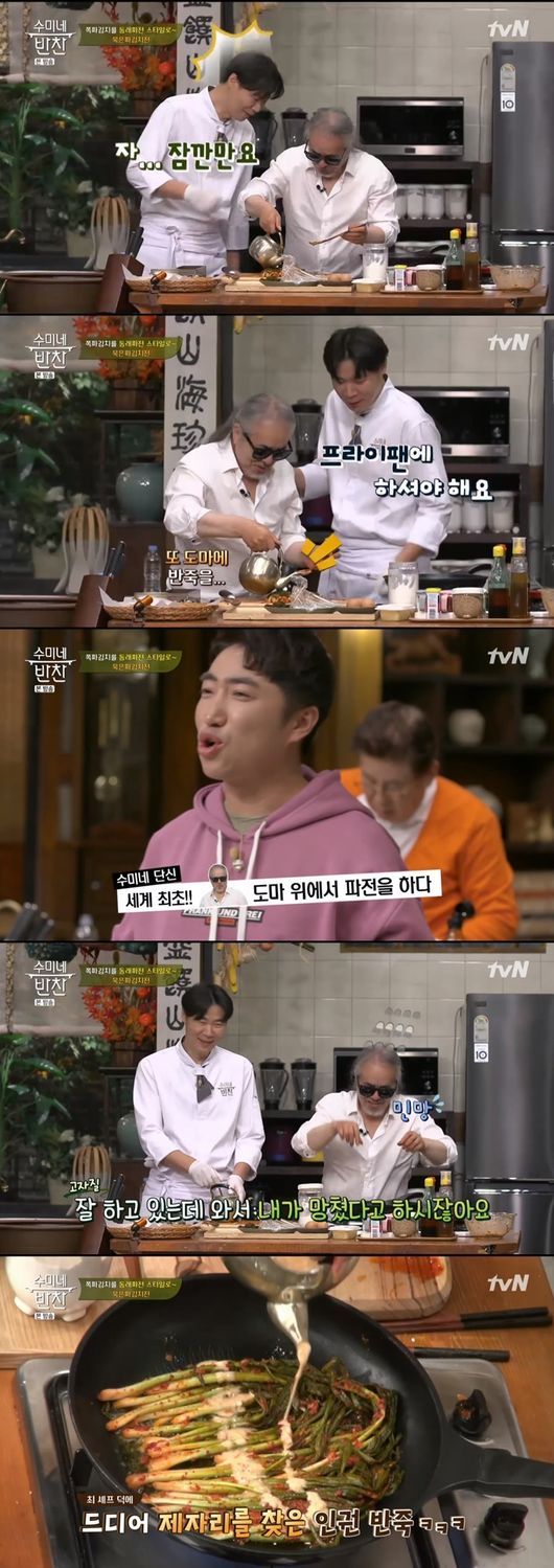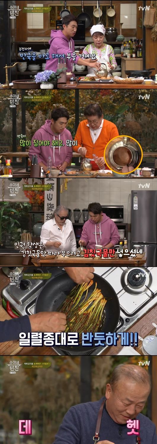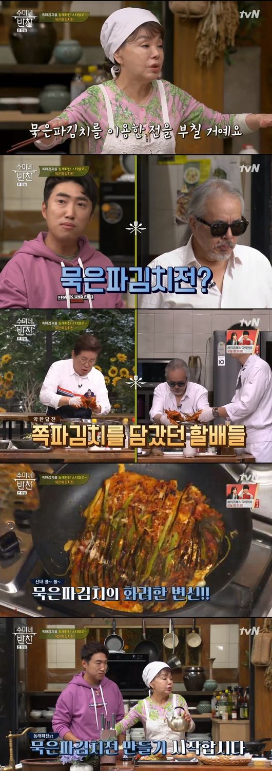 27일에 방송된 tvN '수미네반찬'에서는 김수미가 쪽파김치로 묵은파김치전을 만들었다.